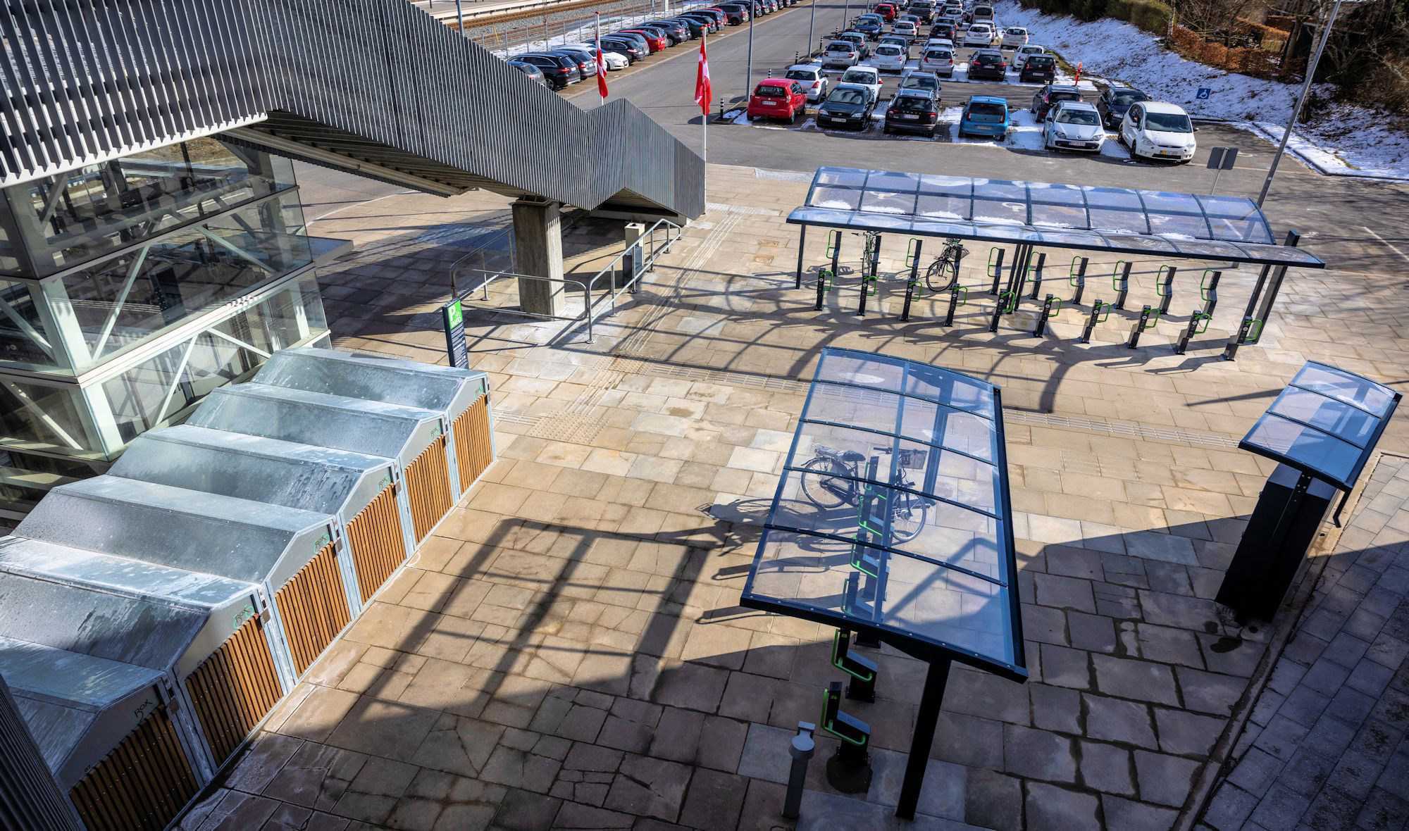 Cykelparkering ved stationen har kostet 4 mio. kr. og er etableret i 2023 med støtte fra Trafikstyrelsen, som har finansieret halvdelen af omkostningerne.