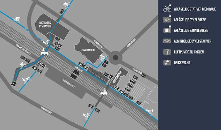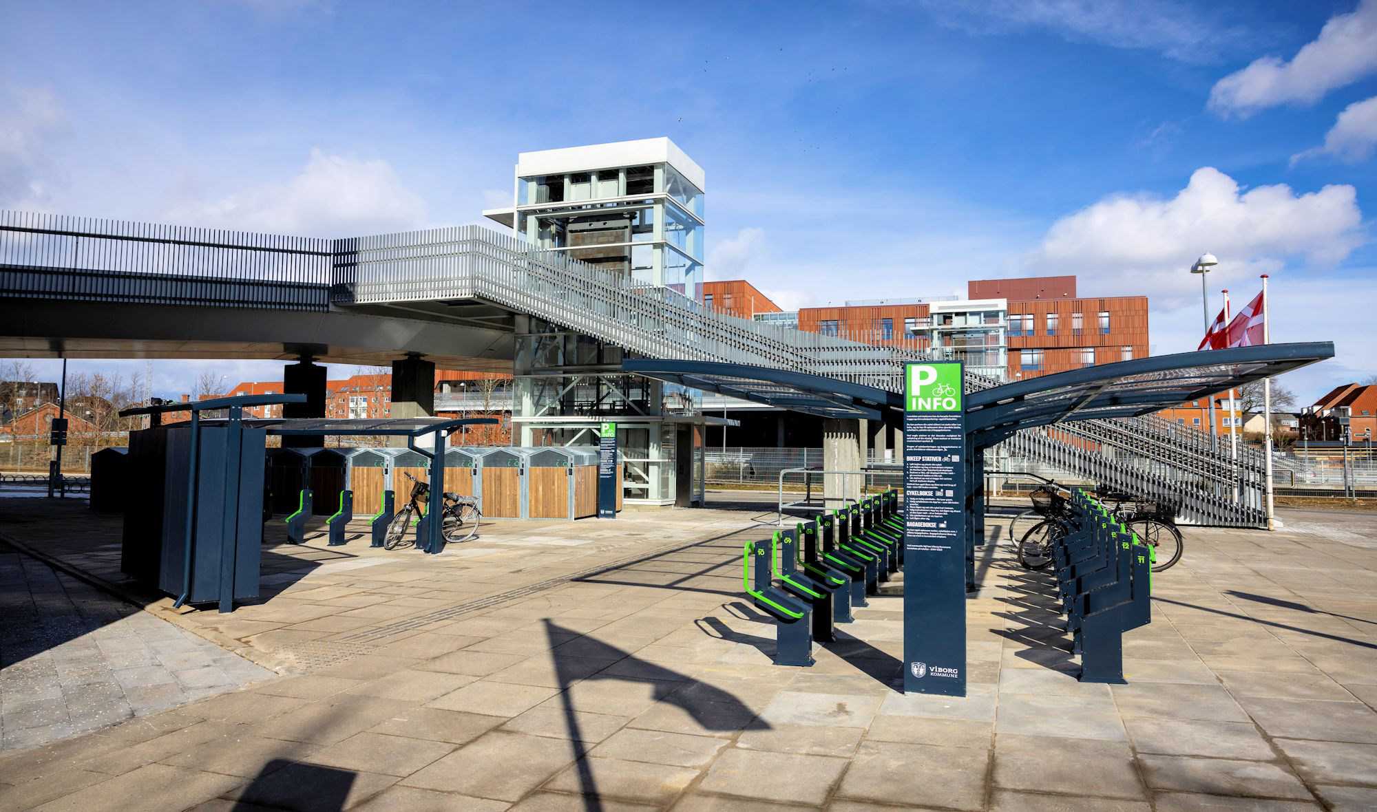 Der er opsat tyverisikker cykelparkering fire steder ved stationen og busterminalen i Viborg.