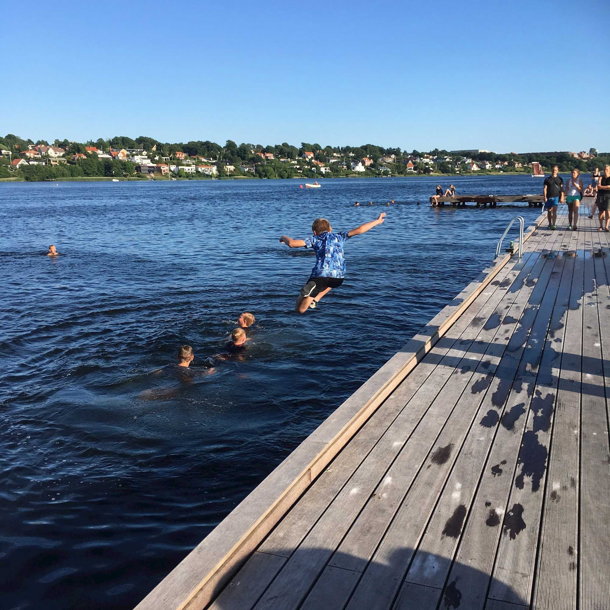 Vi har 14 badesteder ved søer og fjorden. Se kort og læs badevandsprofiler, der beskriver de fysiske forhold på stedet og kvaliteten af badevandet.